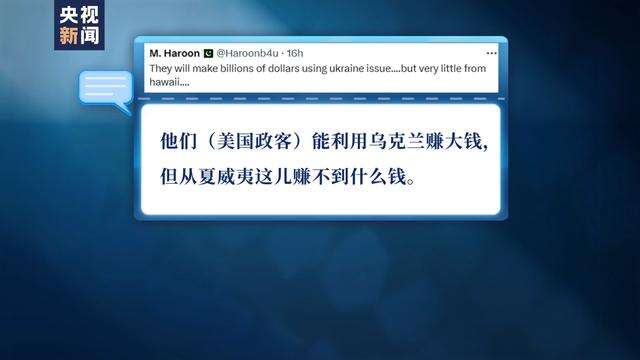 为何美国政客对乌克兰如此上心,却对毛伊岛民众疾苦漠不关心呢?有网友表示,那是因为相较毛伊岛,美国政客更能从俄乌冲突中牟利。