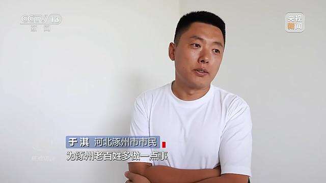 于淇是涿州本地人,如今在外地做生意,发展得不错。得知家乡受灾,他第一时间赶回来做了一名志愿者,参与救援和各种服务,已经忙活了十几天。听说村民们需要新的安置点,他便把自己之前租下来准备开旅店的一栋四层小楼拿了出来,免费供大家使用。