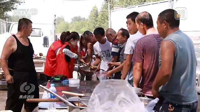 每天一到饭点,小柳村村口的娜姐饭馆便热闹起来。洪水过后,这里成了小柳村村民的大食堂,最多时有上千人来吃饭。彭娜是娜姐饭馆的老板,洪水过后,她把仅剩的一些食物拿出来免费送给大家。道路畅通后,各种物资从全国各地源源不断运送过来,也有许多肉菜等食材。因为很多人家房屋被淹,还不能开火做饭,她索性把自己的小饭馆变成了村里的大食堂。一些女村民干不了重体力活儿,便每天主动来到这里帮忙,为大家准备一日三餐。