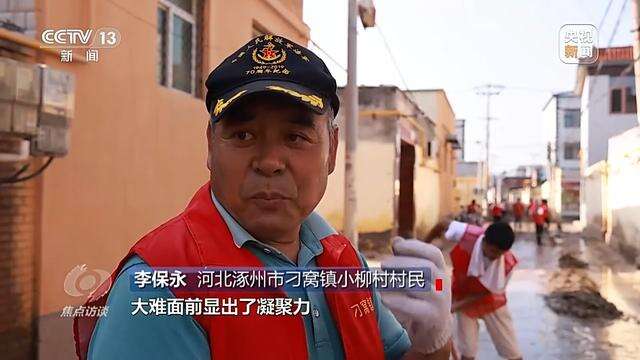河北涿州市刁窝镇小柳村村民 李保永:大难面前显出了凝聚力,不光小柳村这么团结,全国人民都一样,这就是中华民族凝聚力这个根。