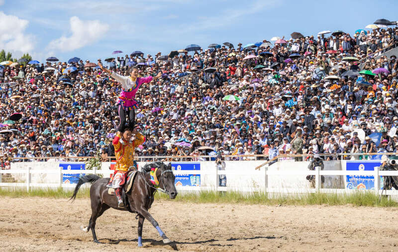 骑手们的精彩表现博得喝彩不断、掌声阵阵,赛马场变成了欢乐的海洋。