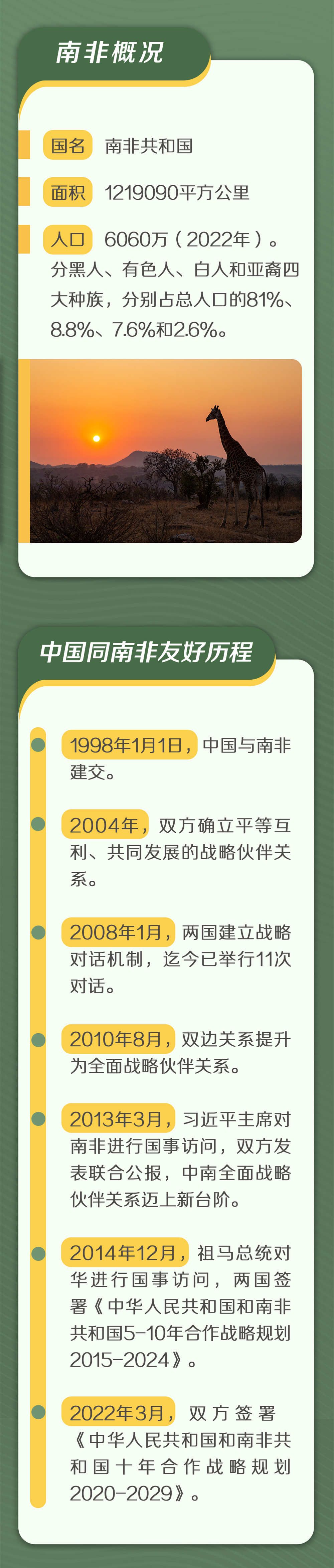 8月21日至24日,应南非共和国总统拉马福萨邀请,习近平主席将出席在南非约翰内斯堡举行的金砖国家领导人第十五次会晤并对南非进行国事访问。在南非期间,习近平还将同拉马福萨共同主持中非领导人对话会。