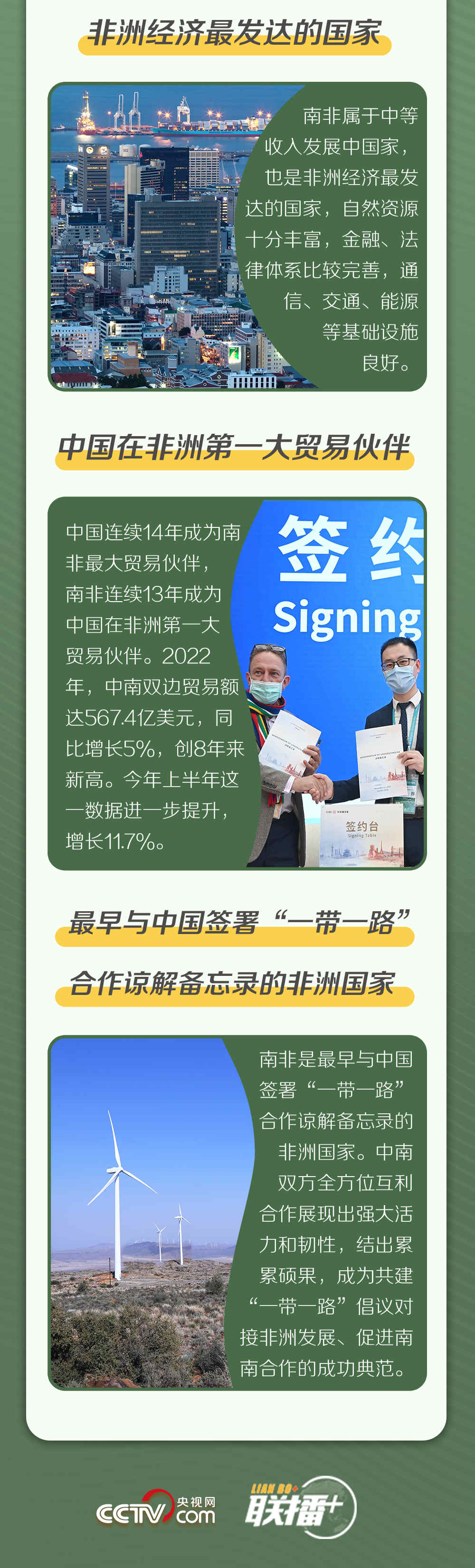 这是时隔五年后,习近平主席再次对南非进行国事访问。此前,习主席为何评价两国关系为“同志加兄弟”?中南双方全方位互利合作结出哪些硕果?南非为何有三个首都?央视网《联播+》邀您一同走进这个“彩虹之国”,寻找答案。