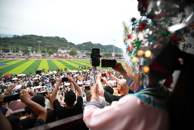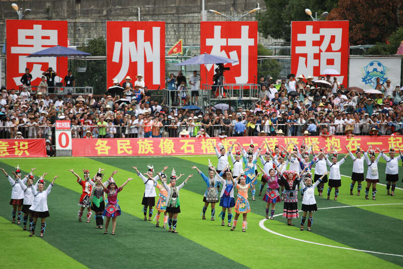 13日,在贵州省黔东南苗族侗族自治州榕江县城北新区田径足球场,伴随数万观众的呐喊,香港明星队与榕江村民队携手上演“揭幕战”,意味着榕江足球的历史掀开了崭新一页。