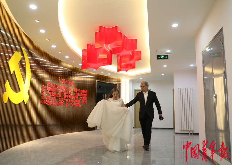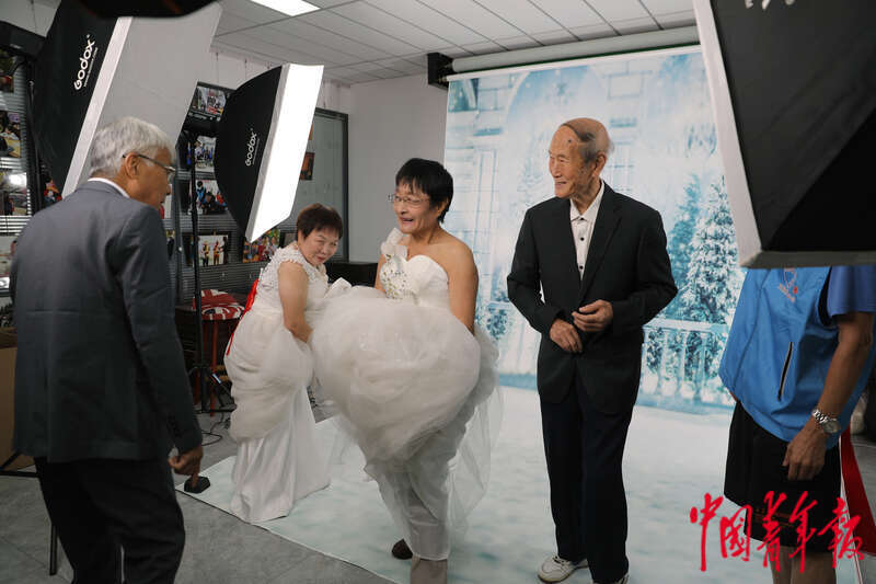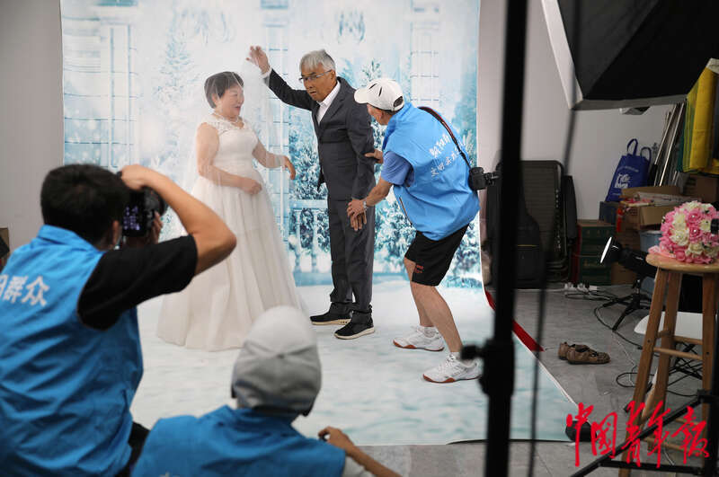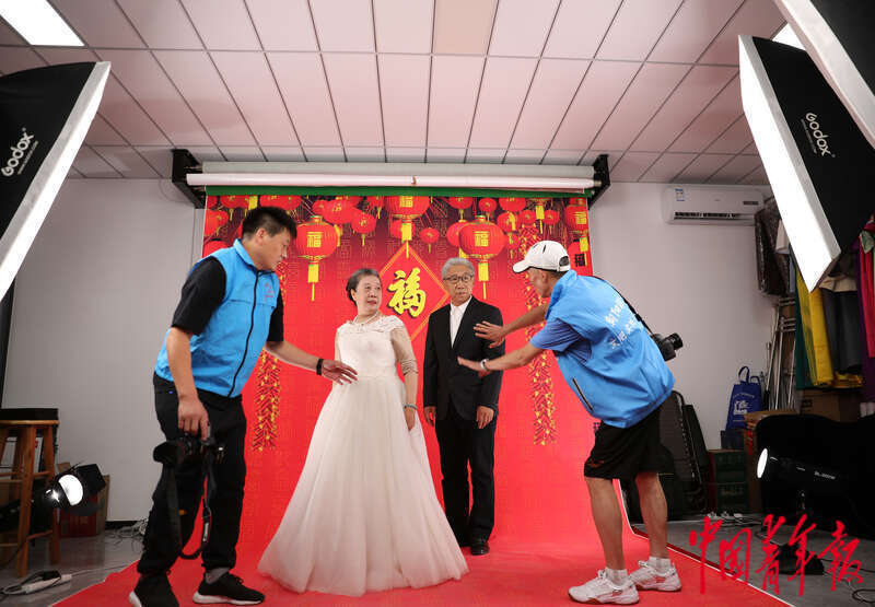 活动组织者史超齐介绍说,该地属于老社区,老年人口占比高,他们当年结婚时没有条件拍摄婚纱照,为了弥补老人的遗憾,每年的七夕节,他的工作室都会组织志愿者为辖区的老志愿者、老党员、金婚夫妻拍摄婚纱照。据了解,这是史超齐劳模摄影工作室为辖区的老年人开展婚纱、全家福公益摄影活动的第三个年头。中青报·中青网记者 陈剑/摄