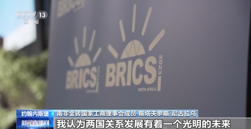 南非金砖国家工商理事会成员 斯塔夫罗斯·尼古拉乌:中国和南非两国之间的经济合作是在相互尊重、相互理解的基础上进行的,两国贸易和投资显著增长,我认为两国关系发展有着一个光明的未来。因为我认为两国之间有着相互尊重和理解,而且双方的工商界人士都希望发展商业、发展经济。