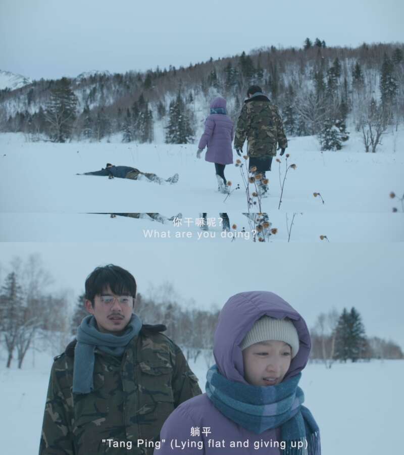 韩萧则被作为“躺平”青年的样本(虽然电影对“躺平”似乎存在什么误解,下文另说)。他看上去没读什么书,小姨嫁到延吉并开了一家饭店,他从四川来到延吉,帮小姨的饭店打打下手。他虽然不是好吃懒做之徒,但平日里在家没少躺,在外没少晃荡,他对生活的态度更轻松也很随意。