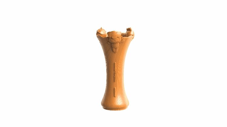 花器造型灵感来自中国南宋时期的官窑花觚,由国家级非物质文化遗产东阳木雕制作而成。花觚的设计前后经历了12轮修改,整体高度18厘米,非常精致小巧,瓶口融合了吉祥物和钱塘潮的元素,起伏的水纹取自浙江山水诗意的韵律之美,瓶口吉祥物造型以活泼欢快的姿态庆祝勇夺桂冠的胜利喜悦。