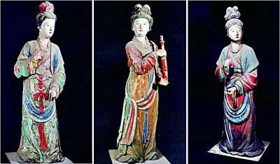 晋祠圣母殿宋代侍女彩塑 资料图片