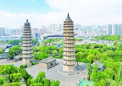 太原郝庄村南的向山上有一个永祚寺,寺旁有两座古塔,高高矗立在市区东部,成为太原的地标性建筑。古往今来,“凌霄双塔”成为太原八景之一,为世人所瞩目,被誉为“晋阳奇观”。