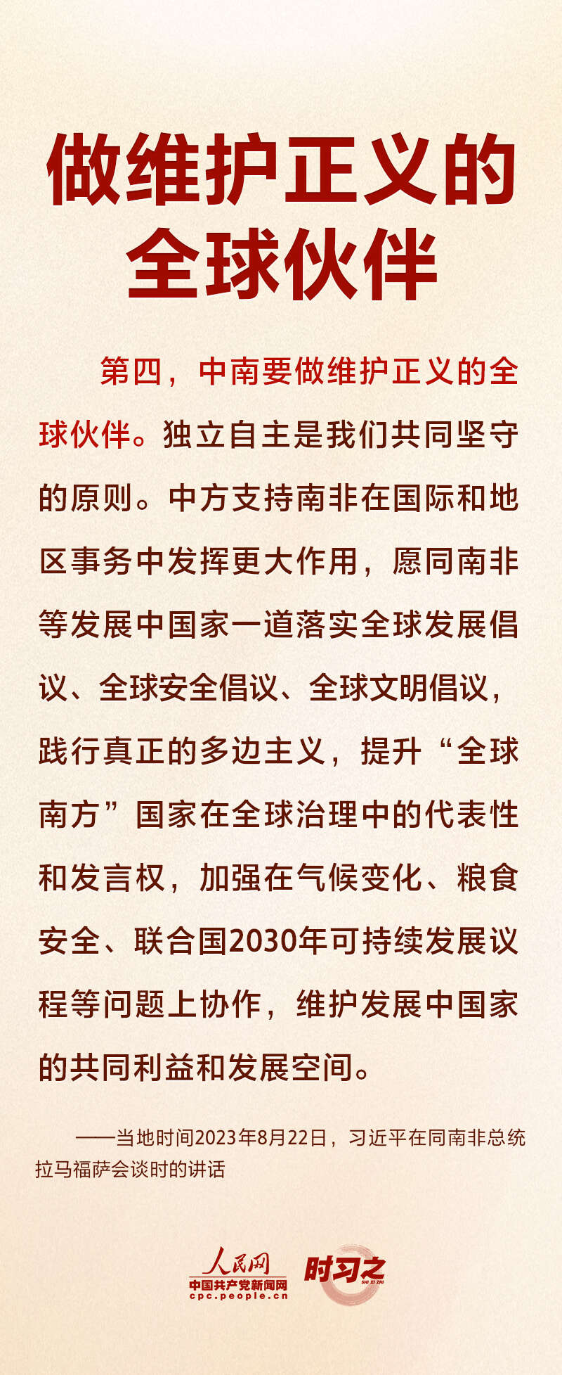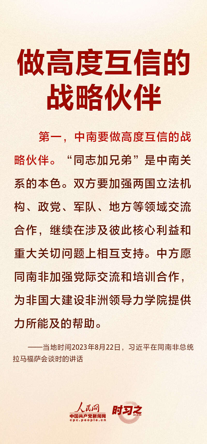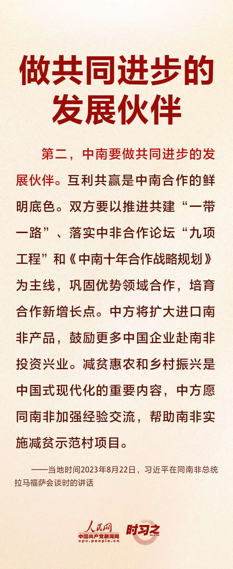 当地时间8月22日上午,正在南非进行国事访问的国家主席习近平在比勒陀利亚总统府同南非总统拉马福萨会谈。就如何推动中南全面战略伙伴关系不断迈上新台阶,习近平提出四点建议。