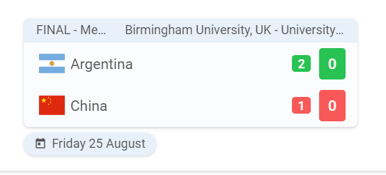 面对实力强劲的阿根廷,中国队经过鏖战,在点球大战中以1:2惜败对手,摘得亚军。