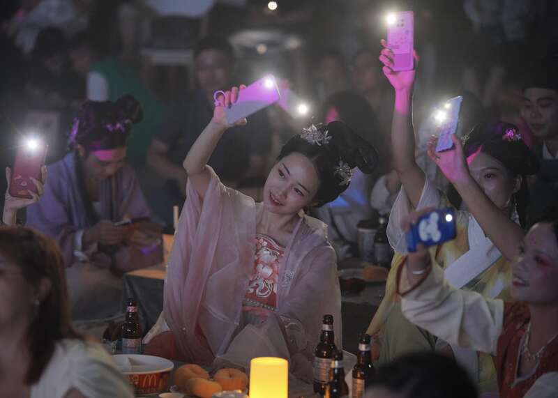 年轻人穿汉服看演出。胡强明/摄