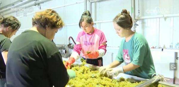 这两天,在新疆巴州焉耆县七个星镇的千亩葡萄种植基地,晶莹剔透的葡萄挂满枝头、甜香扑鼻。工人们正在忙着采摘,采摘完毕的葡萄会被装车运送到压榨车间。