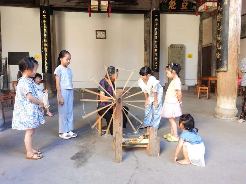 浙江省新昌县南山村文化礼堂,老艺人教学手工纺线等古法技艺。团新昌县委供图