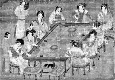 所以,《宫乐图》承载历史信息的丰富性、真实性,远远高于其他三张图。若要研究唐代的生活用具、服饰、饮茶、音乐等,这张《宫乐图》一定是绕不开的。