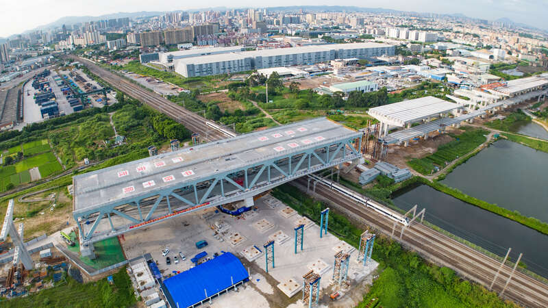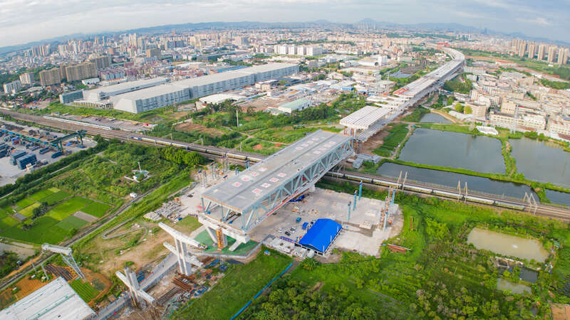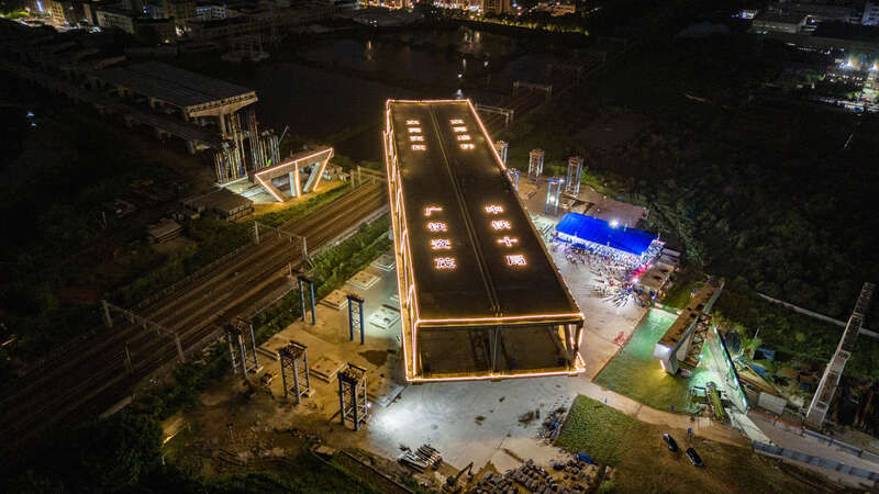8月31日凌晨2时30分,东莞市莞番高速上跨广深铁路主桥经过100分钟逆时针旋转实现精准定位,标志着我国首座转体双层公路桥成功跨越运营铁路。