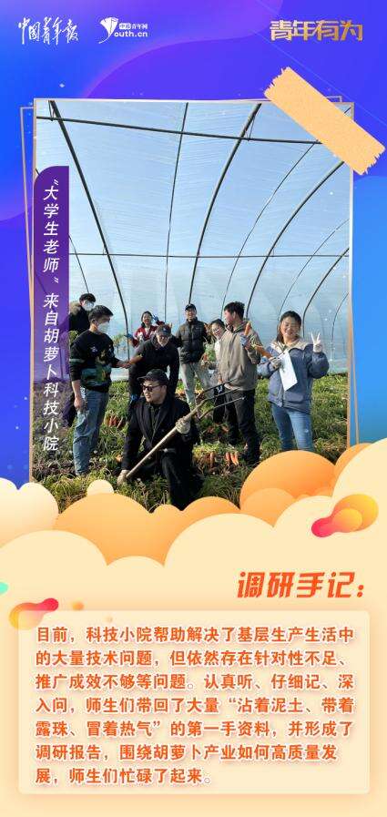 地处沽河、小沽河、五沽河“三沽汇流”之地的店埠镇,种植胡萝卜已有30年历史,农户们向师生们吐露了这样的苦恼:“近年来,种植胡萝卜的施肥量一年比一年多,投入成本逐年增加,胡萝卜产量却逐年下降,甚至品质开始出现一些问题,收入越来越低。”这个问题并不是个例。目前,科技小院帮助解决了基层生产生活中的大量技术问题,但依然存在针对性不足、推广成效不够等问题。认真听、仔细记、深入问,师生们带回了大量“沾着泥土、带着露珠、冒着热气”的第一手资料,并形成了调研报告,围绕胡萝卜产业如何高质量发展,师生们忙碌了起来。
