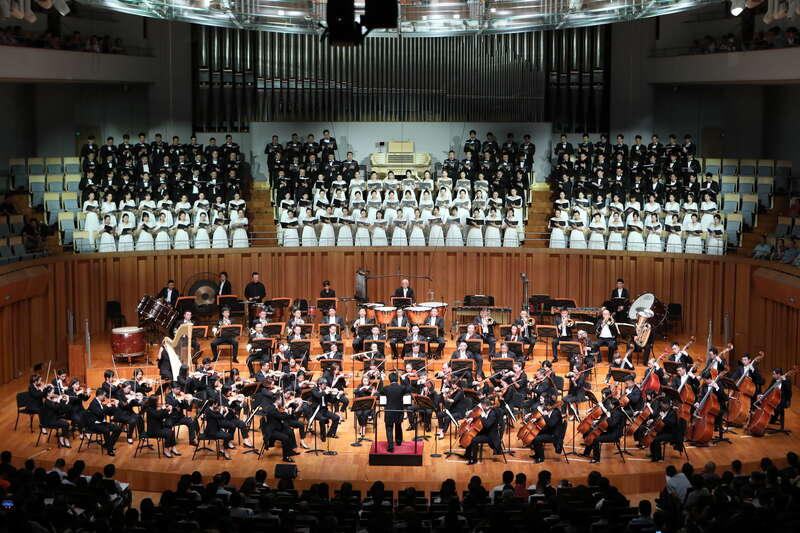 在国家一级指挥董俊杰的率领下,天津交响乐团百人乐队联袂中央音乐学院合唱团、北京音乐家协会合唱团、天津交响乐团(附属)合唱团,携手男高音歌唱家张喜秋、女中音歌唱家蔡静雯、琵琶演奏家张雅迪,形成近三百人的演出阵容。