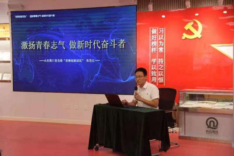 8月31日,在青岛地铁尹星劳模创新工作室,团中央“青春心向党 奋进新征程”示范宣讲团成员、湖南大学思想政治辅导员、湖南省中国特色社会主义理论体系研究中心特约研究员孙鲁霞从“一探大会盛况”“表述从何而来”“汲取思想伟力”“寄语时代新人”四个方面为切入点,向现场青年讲述了如何成长为“担当民族复兴大任的时代新人”。团十九大代表,山东港口青岛新前湾集装箱码头有限责任公司AGV副主管、团委书记张常江,结合自身岗位实际,讲述了作为一名港口青年,如何把学习习近平总书记重要讲话精神的成效转化为坚定理想、指导实践、推动工作的强大力量。