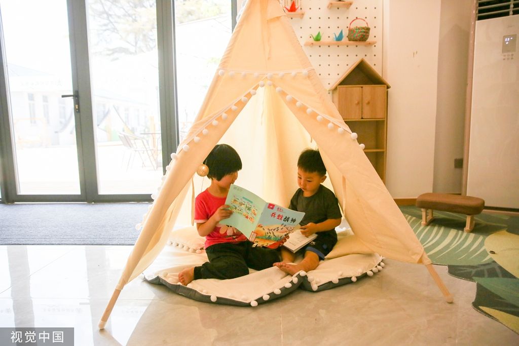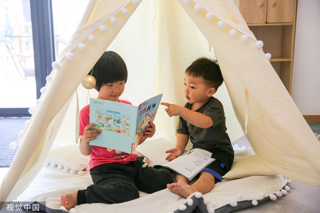 2023年9月2日,江苏南通,如皋市城南街道肖陆村,小朋友在提档升级后的农家书屋里阅读图书。