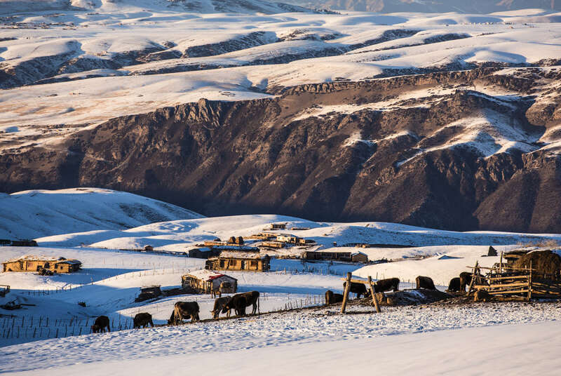 天山深处、乌孙古道上琼库什台村的“冬窝子”(冬季牧场)(2016年1月23日摄)。新华社记者 沈桥 摄