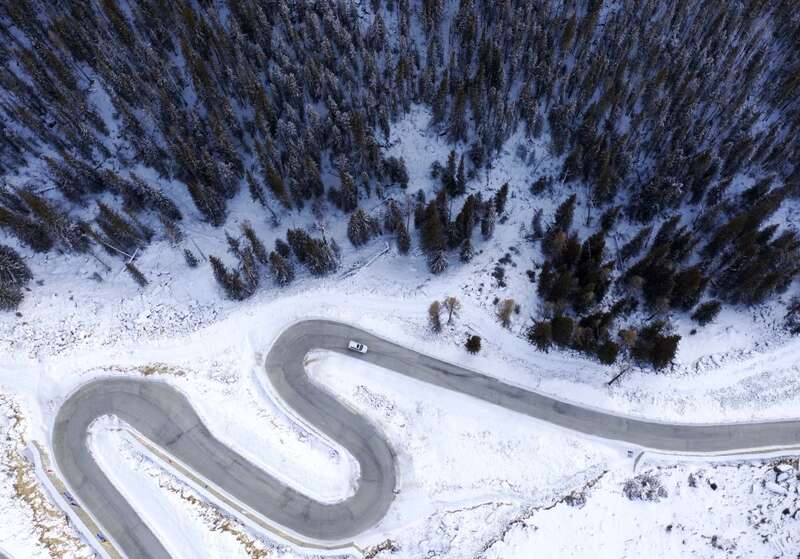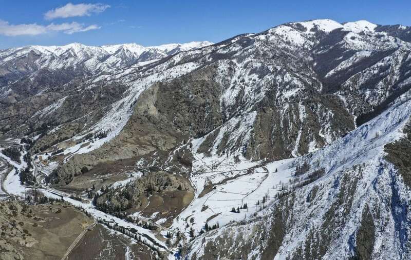 春雪过后的阿尔泰山脉(无人机照片,2023年4月9日摄)。新华社记者 胡虎虎 摄