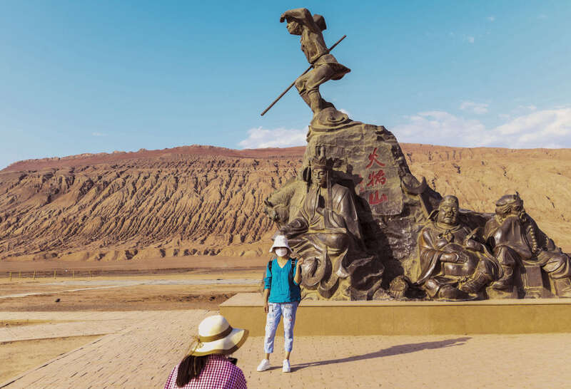 游客在位于新疆吐鲁番的火焰山景区观光(2020年9月21日摄)。新华社记者 王菲 摄