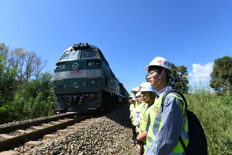 凌晨4时,在佳(佳木斯)抚(抚远)铁路沿线,一支铁路勘察班组正进行勘察和测量作业。他们来自中铁第五勘察设计院,由10名平均年龄为23岁的铁路设计师组成。自7月中旬以来,他们要利用凌晨“天窗期”,快速进行数百次的测量和勘察作业,平均每天徒步10公里。