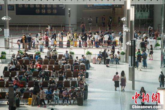 旅客在高铁香港西九龙站候车大厅等候列车。中新社记者 侯宇 摄