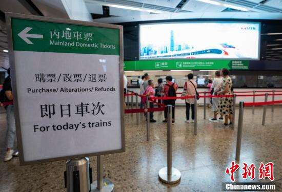 旅客在高铁香港西九龙站购票大厅办理票务。中新社记者 侯宇 摄