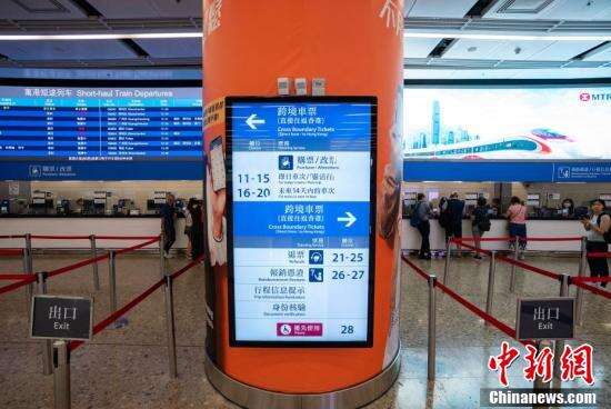 高铁香港西九龙站为旅客标示出办理票务的指示牌。中新社记者 侯宇 摄