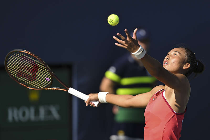 中国选手郑钦文在今天的比赛中。视觉中国供图