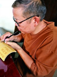 江西省级非遗项目章贡客家竹雕省级代表性传承人郭英雄在制作根雕作品。本报记者 闫汇芳摄