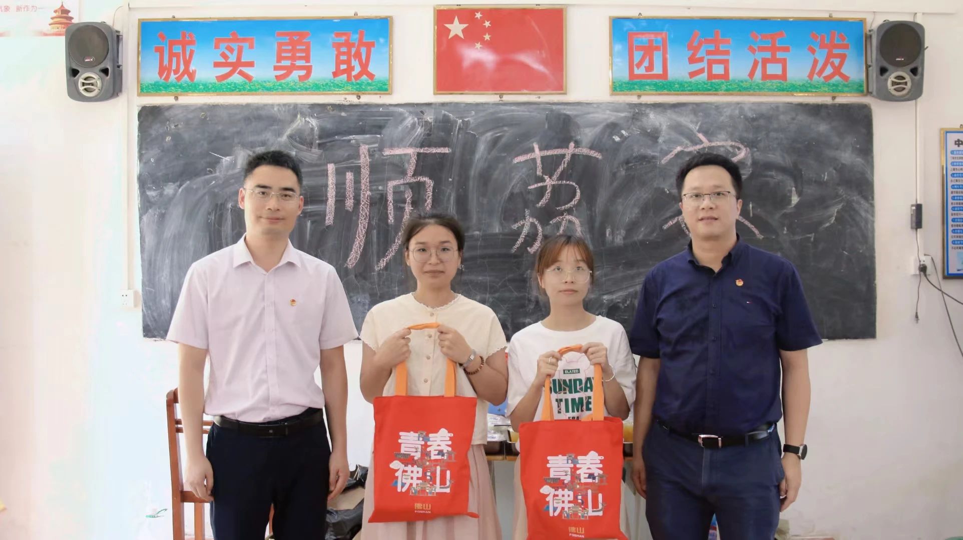 (佛山团市委书记徐旭雁(右一)、茂名团市委书记魏鹏程(左一)与山区计划青年志愿者合照)
