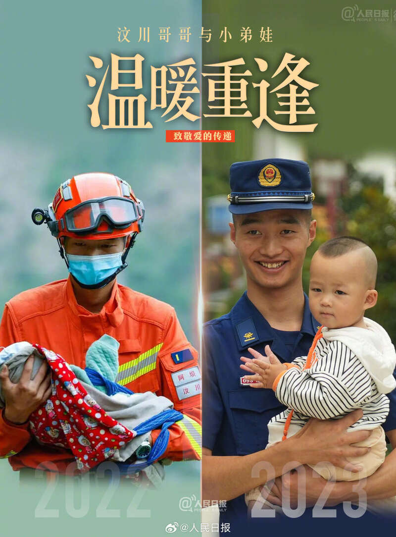 泸定地震1周年之际,“汶川哥哥”张自立再回泸定,和怀抱里的小弟娃杨泽楷重逢。汶川哥哥怀抱里的小弟娃长高了。张自立6岁曾亲历汶川地震,使他对杨泽楷有着特殊的感情。小时候被保护过,长大后保护他人,致敬爱的传递!