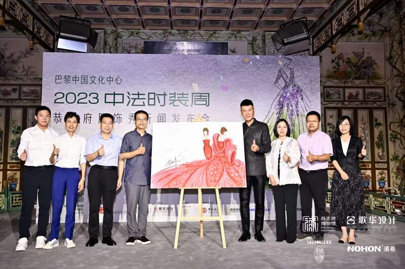 巴黎中国文化中心2023中法时装周以“恭王府”为主题举行的开幕大秀,是“恭王府”服饰文化品牌的首秀,届时将展示约35套恭王府与国际著名服装设计师劳伦斯·许联名的服装,以“非遗传承国潮文化”为设计理念,以恭王府的传统文化元素为设计灵感,采用中西合璧的设计风格,将西化的立体裁剪和古典、东方的设计元素相结合,选择云锦面料辅以苗绣、苏绣等技法,让世界看见中国传统“精雅生活”。