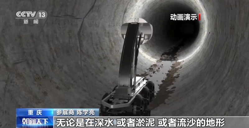 参展商 陈学亮:第一个是更安全,因为它代替了人工下井。第二个是更智能,因为通过它的高清摄像头可以智能地识别各种缺陷,将各种缺陷导入我们的智能系统。第三个是更全面,无论是在深水、淤泥或者流沙的地形都可以进行检测。