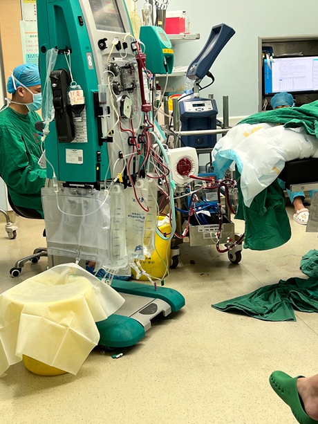 在人民医院ECMO团队到达前,为赢得时间,她与同事提前建立好了股动静脉通路。