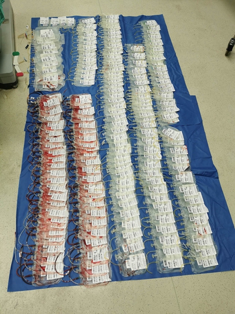 她看到,一排血袋排起整齐队伍,也代表着这场跨越两个医院、3家单位的接力赛告一段落。