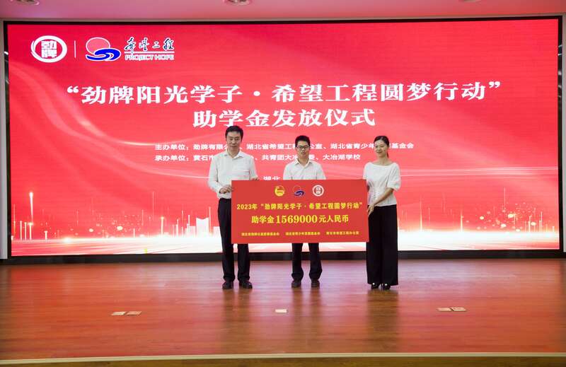 中国青年报客户端讯(中青报·中青网记者 朱娟娟 通讯员 李慧敏)近日,“劲牌阳光学子·希望工程圆梦行动”助学金发放仪式在湖北黄石大冶湖学校举行。338名黄石学子在劲牌有限公司的资助下圆了大学梦。
