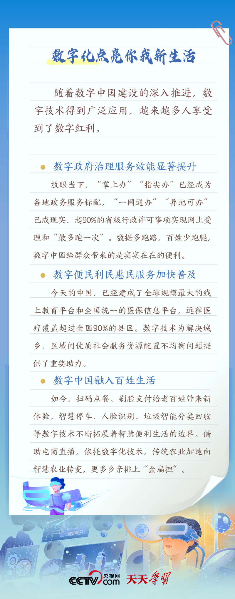 当今世界,信息技术创新日新月异,数字化、网络化、智能化深入发展。党的十八大以来,习近平总书记曾多次明确强调推进“数字中国”建设。什么是“数字中国”?怎样建设“数字中国”?央视网《天天学习》特整理学习笔记,与您一起学习。