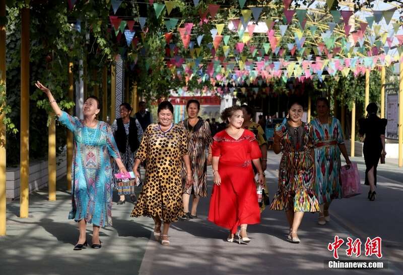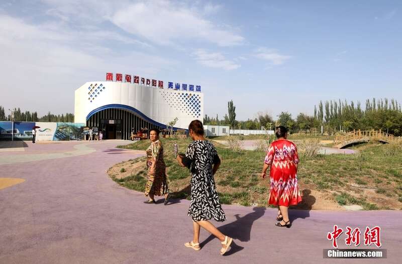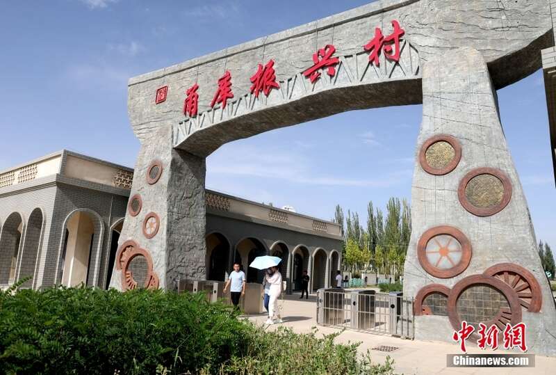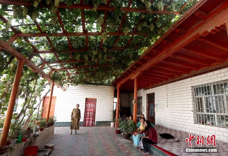 9月7日,甬库振兴村的村民行走在葡萄长廊下。位于新疆阿克苏地区库车市的甬库振兴村是一个以“江南龟兹·甬库桃源”为主题的旅游新村,葡萄长廊、明湖水系、花卉观光区、果蔬采摘区等景点构建出“园在林中、水在园中、人在景中”的花园式村落。该村由浙江宁波援疆培育打造,未来将成为集种植、采摘、销售、存储,吃、住、游、购、娱于一体的旅游体验中心。