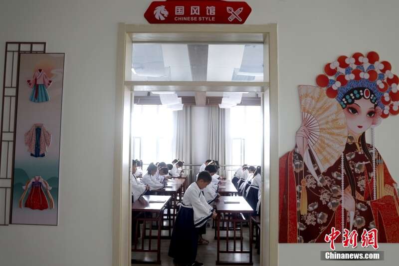 9月7日,甬库振兴村,孩子们身着汉服学习“三字经”。