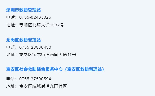 据“深圳市政务服务数据管理局”消息,如遇有需要帮助的市民可以拨打以下救助电话。