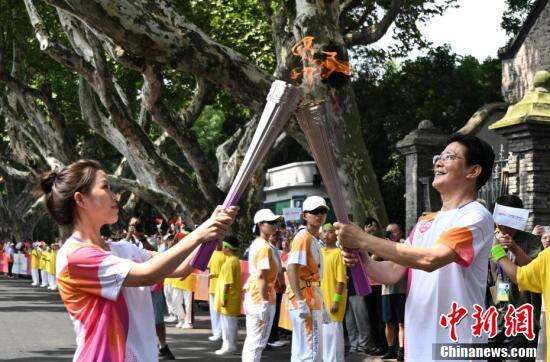 时代楷模陈立群传递火炬。
