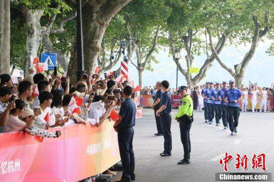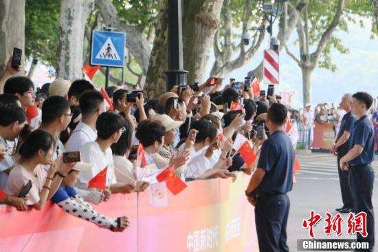 民众观看杭州亚运会火炬传递。杭州亚运会火炬首日传递共有106棒火炬手参与。高举的亚运火炬,传递着团结、友谊和希望。杭州亚运会火炬的名字“薪火”,寓意着中华文明薪火相传。