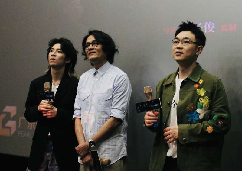 电影主演大鹏(右)、林家栋(中)、孙阳(左)与观众互动。舒家奎/摄