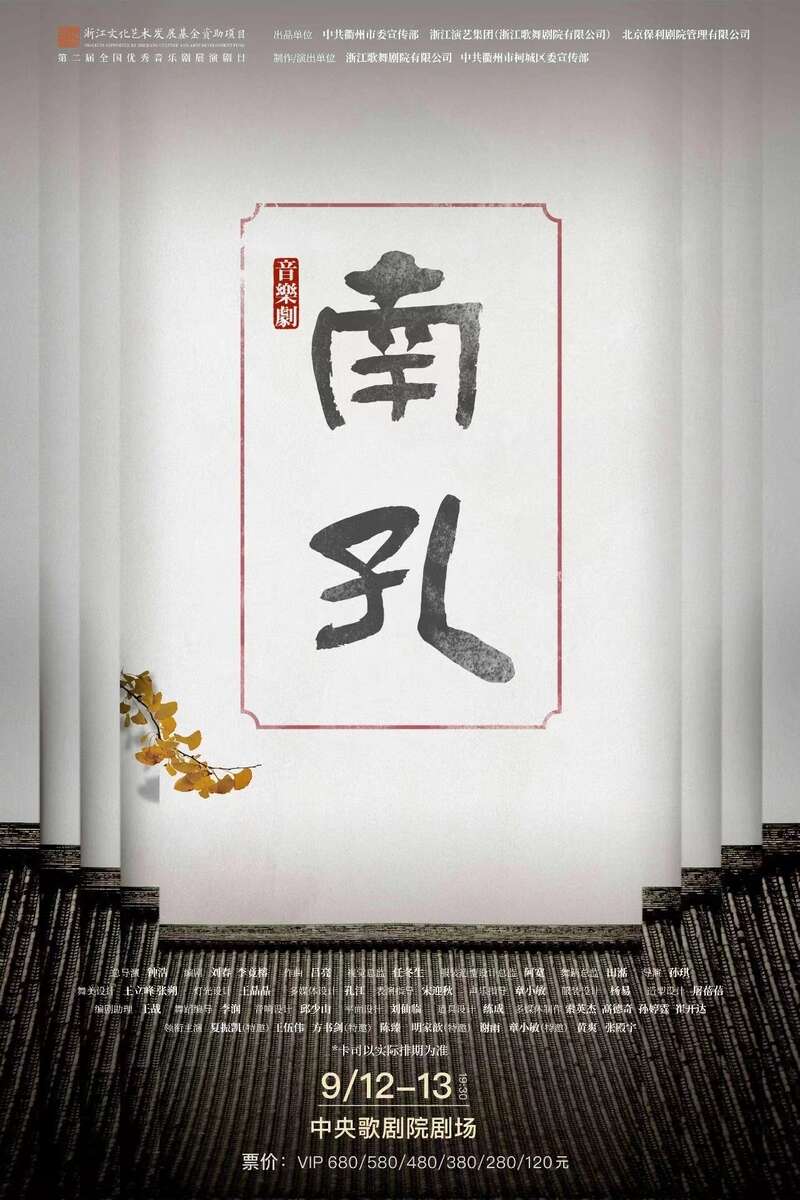 音乐剧《南孔》是首部以南孔文化为题材的音乐剧,根据“孔洙让爵”的历史事件,讲述了元世祖诏命已在衢州安家百年的孔氏南宗重回曲阜奉祀,孔子第53世嫡长孙衍圣公孔洙,为了心中的天下和家庙的守护,将“衍圣公”爵位让于曲阜宗弟后,回到衢州化官为民、衍圣弘道的故事。