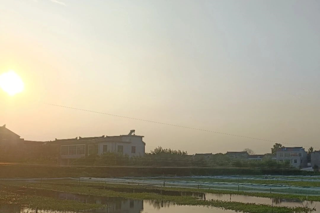 夕阳下的田边池塘